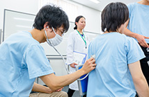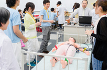 血圧、脈拍、体温などの測定について、実際の患者と向かい合った形での実習に取組みます。